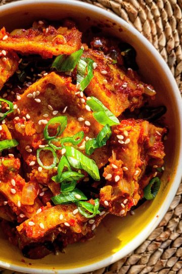 This is a simple side dish from Korea. I actually eat this as my main and only meal sometimes. If its too spicy for you, obviously adjust the seasoning, or eat it with freshly cooked rice to make the heat a little subtle. If you don’t have an air fryer, you can fry the tofu […]