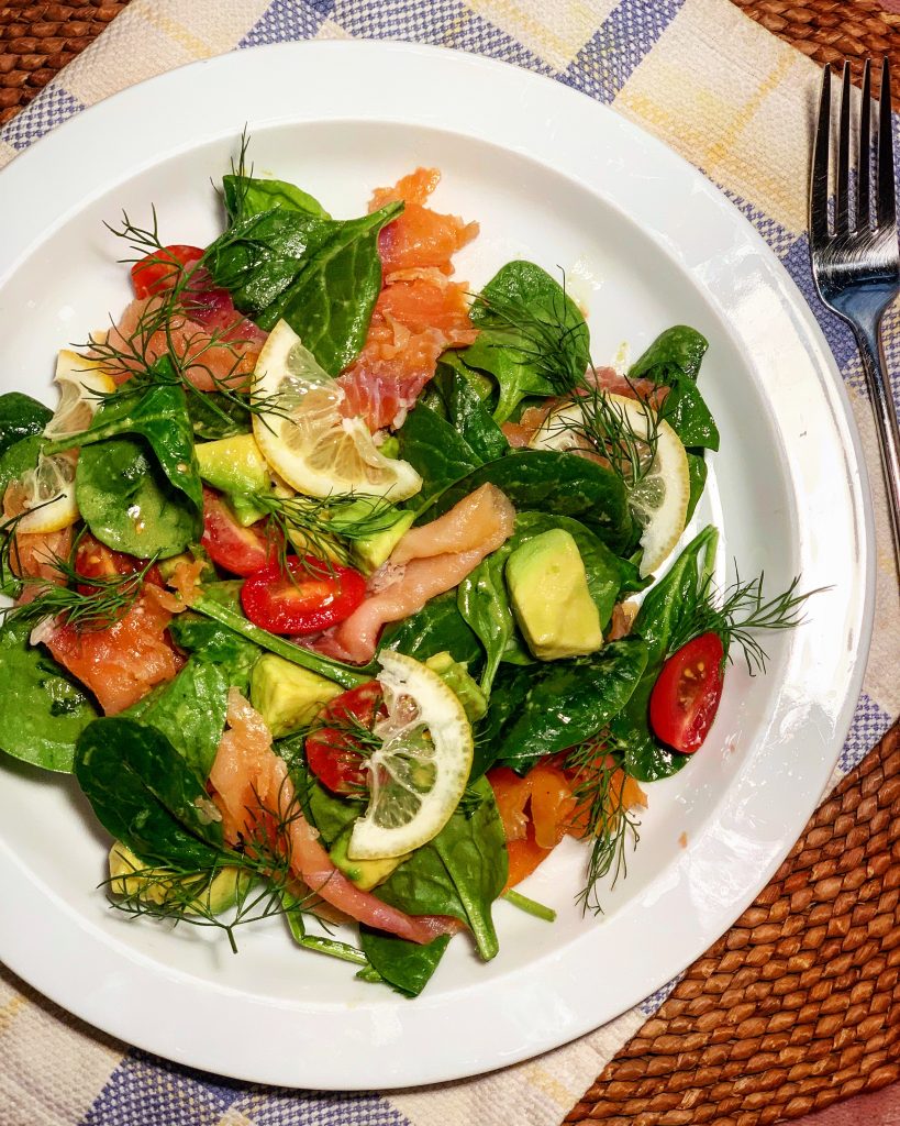 This one right here is the definition of pretend cooking. I even bought the pre-washed baby spinach. Summer is approaching so this fresh and light salad is a go to and must eat. I have a great idea to share here, whenever I buy lox for salad, I got the trimmings. It’s cheaper and more fatty, that fat is rich with omega 3? 6? 18? I don’t know but I know it’s the good fat.